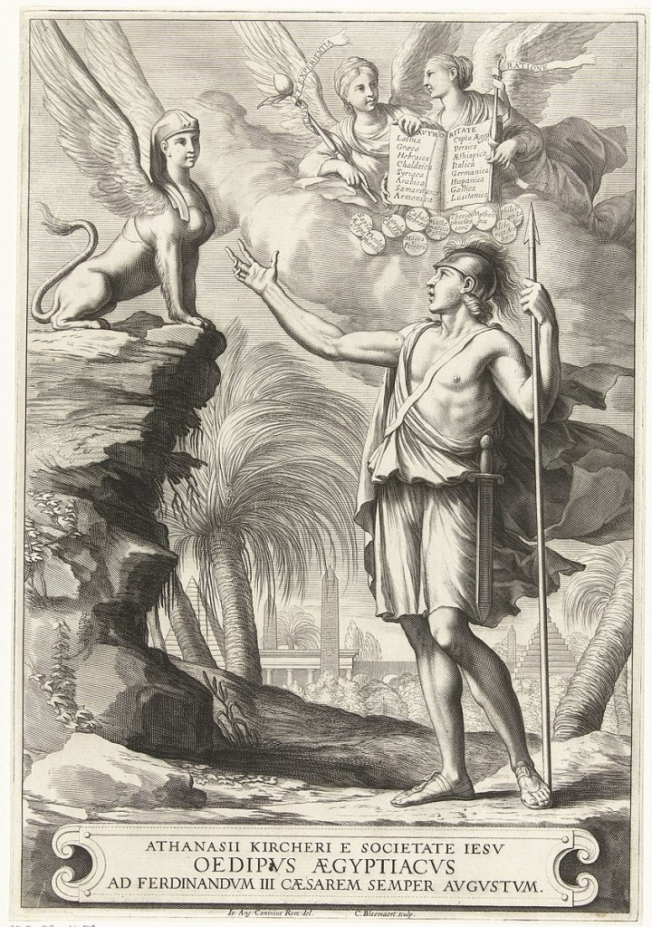 “At the dawn of time, Kircher, explained, Adam, instructed by God and the angels, and guided by experience acquired during his centuries-spanning life, possessed perfect wisdom, which he passed on to his children. Noah and his sons preserved antediluvian knowledge from destruction by the Flood, which Kircher placed 1,656 years after the creation of the world and 2,394 years before the birth of Christ. But Noah’s son Ham polluted the Adamic wisdom with magic and superstition. Eventually the great Egyptian sage Hermes Trismegistusrecovered the pure antediluvian wisdom and invented hieroglyphic writing to preserve it for posterity. But later Egyptian priests mixed the Hermetic wisdom with magic and superstition, creating, yet again, an ambiguous legacy, which was passed on to other nations.”