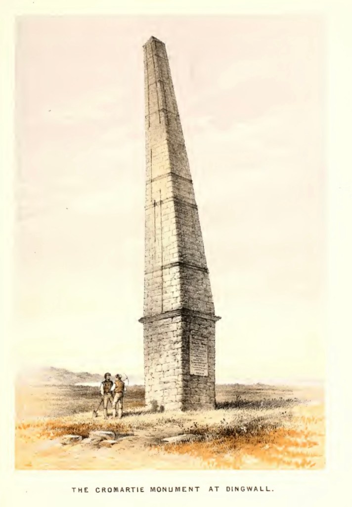 “This place affords very little news … The Earl of Cromartie died Friday last, universally regrated. Upon hearing of the Queen’s death he shutt himself up in his closet for three hours, was very melancholy when he came out, went to bed and niver rose again.” The Earl had left instructions however – seemingly now less eccentric in the context of this article – to be buried outside the parish church of Dingwall (where, it seems, his father and grandfather had also been buried) under an obelisk on a large earth mound, a former place of assembly, which was perhaps originally the Viking “thing” (place of assembly) which forms part of the etymology of the place name Dingwall, and which was known from at least the 16th century as the moothill. The obelisk was built in 1710 but following an earthquake in 1816 it was dangerously leaning and so sadly had to be taken taken down in 1920. However, the late Earl Rorie’s mother, Countess Sibill, had a replica built in 1923. We cannot know what original inscriptions it may or may not have had on it, but some photographs which pre-date this do survive, and there are some more details preserved in the form of the 1923 memorial plaque, happily renewed in 1976 by the always wonderfully historically-conscious Rorie.