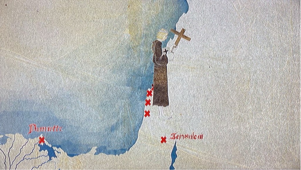 In ‘The Raven’s Skull’, using Joinville’s narrative, I then went on to consider how Kenneth would have set out on Louis’s Crusade with Hugh, and then, following Hugh’s death in 1248, continued onwards with the crusaders so as to join King Louis; hence sailing to Cyprus, Egypt and Acre, with Louis, as a member of the company of Hugh’s nephew and successor, Gautier de Chatillon.