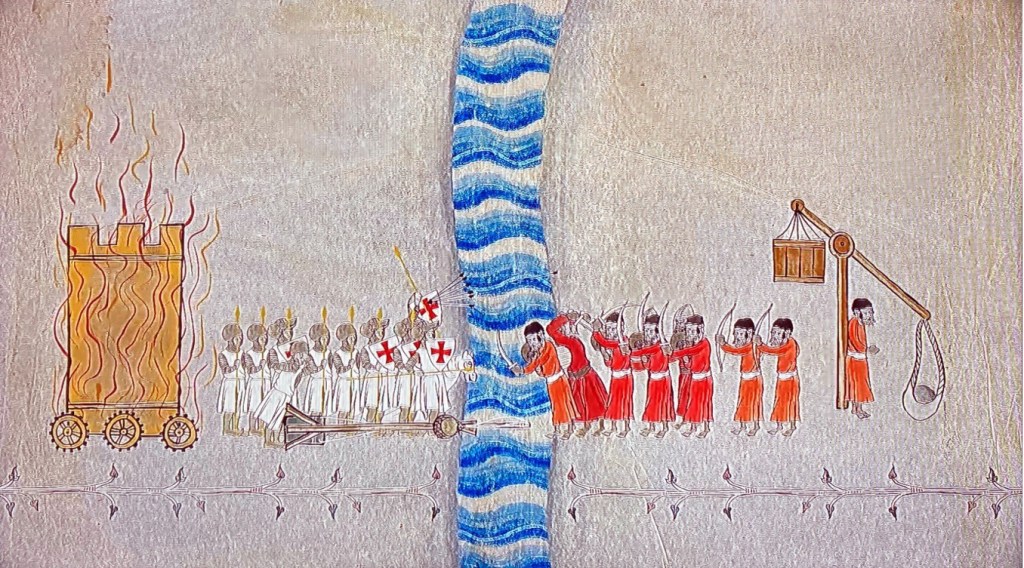 Where any image in this article is uncaptioned, it was taken by the author himself, in August 2022, and shows the Rassemblement Medieval d’Aigues-Mortes, a festival which took place in August 2022 to commemorate King Louis IX and his knights, and the foundation of the town, at the walled crusader fortress of Aigues-Mortes. This was the port from which Louis and his party of crusaders set sail in August 1248. All other images, such as the above, are either in the public domain or licensed under the Creative Commons Attribution-Share Alike 4.0 International licence.
