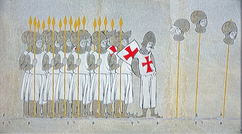 And as I then set out in ‘The Raven’s Skull’, the chronicler Jean de Joinville, in his ‘Life of Saint Louis’ gives a first-hand account of his own personal experiences on Louis’s Crusade, and seems to have had much to say about Hugh’s crusader nephew, Gautier de Chatillon, in particular. Joinville records that Gautier was often in his company. And, as I established, Kenneth must have been one of Gautier’s party.