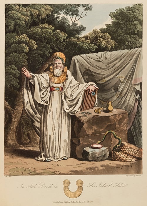 An Archdruid in his Judicial Habit from Costume of the Original Inhabitants of the British Isles (1815) by Samuel Rush Meyrick and Charles Hamilton Smith