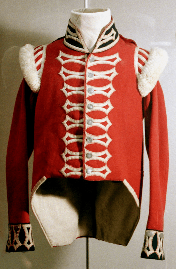 The uniform jacket of a private soldier of a flank company of the Black Watch, circa 1815